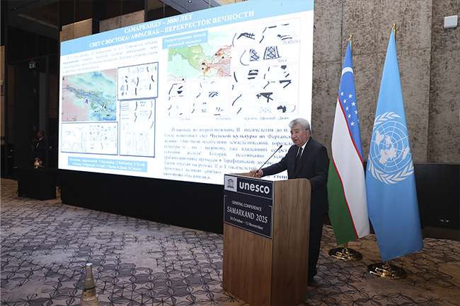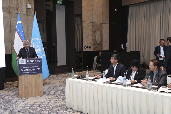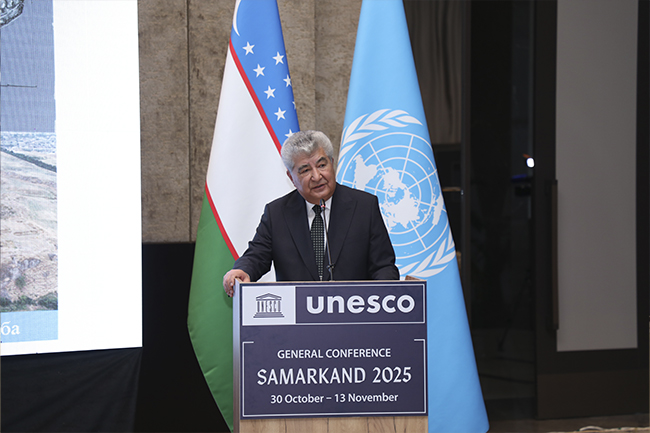 В эти дни в древнем Самарканде, на перекрёстке культур и цивилизаций проходит 43-я сессия Генеральной конференции ЮНЕСКО — историческое событие, которое впервые за последние сорок лет организовано за пределами штаб-квартиры организации в Париже и впервые — в Центральной Азии. Проведение столь масштабного форума именно в Узбекистане является признанием растущей роли нашей страны в международном культурно-гуманитарном пространстве и символом её вклада в сохранение и продвижение мирового наследия. В работе конференции принимают участие более 2800 представителей из 190 государств-членов и международных организаций, включая около 70 высокопоставленных персон.