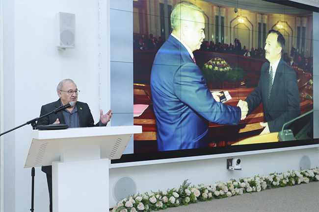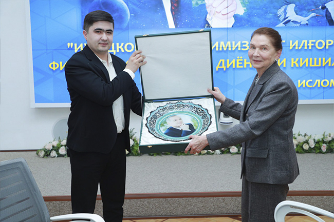 Это подтвердил в своём выступлении руководитель Комплекса, доктор исторических наук, профессор Темур Ширинов. Он отметил, что в постоянно действующей экспозиции «Сердце, вместившее Вселенную» представлены портреты, картины, скульптуры, а также фотографии более 50 авторов. Только в минувшем 2025 году выставку посетило свыше 45 000 человек. Всё это говорит об огромном интересе наших соотечественников и гостей столицы к жизни и деятельности выдающейся личности.