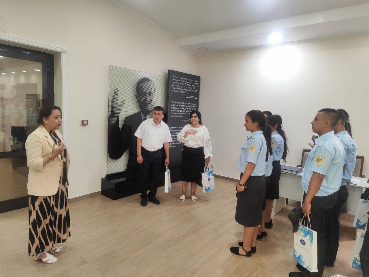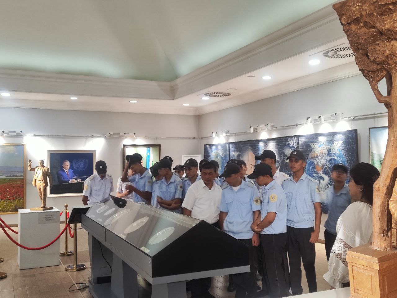 Гостями комплекса стали также учащиеся 1-го Ташкентского академического лицея при МВД Республики Узбекистан. Осматривая экспозицию «Сердце, вместившее Вселенную» ребята живо интересовались, представленной в фото-материалах, хроникой первых лет независимости, когда благодаря мудрой политике Первого Президента удалось избежать гражданских войн, внутренних противостояний. Для них это – наглядный урок мужества, смелости, решительности. И именно такими качествами должны обладать будущие защитники правопорядка.